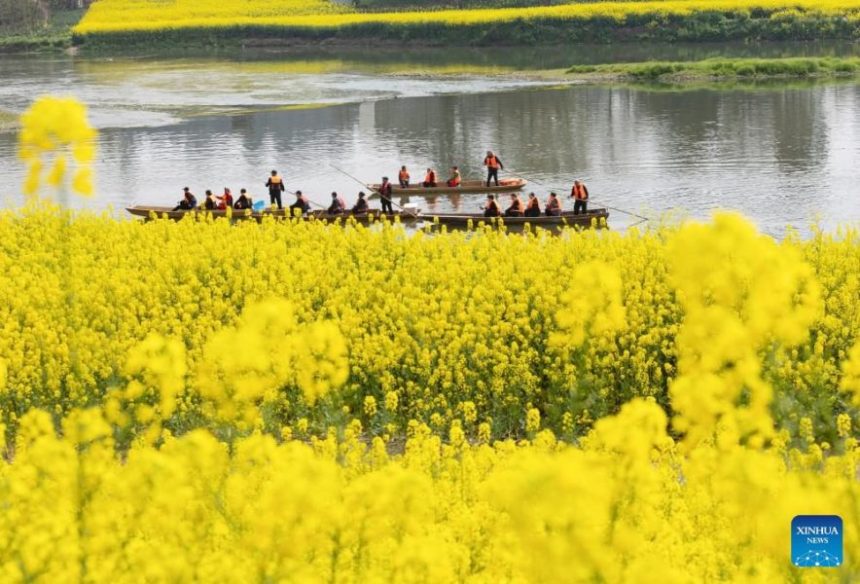 Tourists enjoy view of rapeseed flowers in Lianghe Village, China’s Sichua