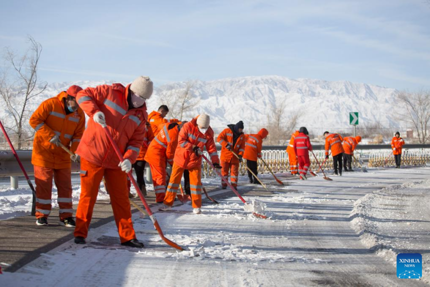 Farmers pick vegetables at a greenhouse in Longyao County, north China's Hebei Province, Dec. 17, 2023. Countermeasures have been taken to prevent or alleviate impacts inflicted by extensive snowfall and…