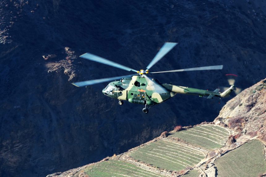 A helicopter attached to an army aviation brigade under the PLA Xizang Military Command flies in a mountainous area during the reconnaissance training in harsh environmental conditions on November 26,…
