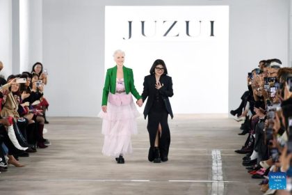NEW YORK, Feb. 12 (Xinhua) -- Chinese brand JUZUI on Sunday staged its runway show at the New York Fashion Week by drawing inspiration from blossoming peony, a flower rooted…