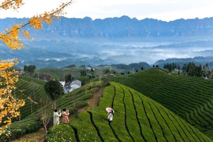 Tourists visit a tea garden in Zouma Township of Hefeng County, Enshi Tujia and Miao Autonomous Prefecture, central China's Hubei Province, Dec. 6, 2023. (Xinhua/Yang Wenbin) Tourists visit a tea…